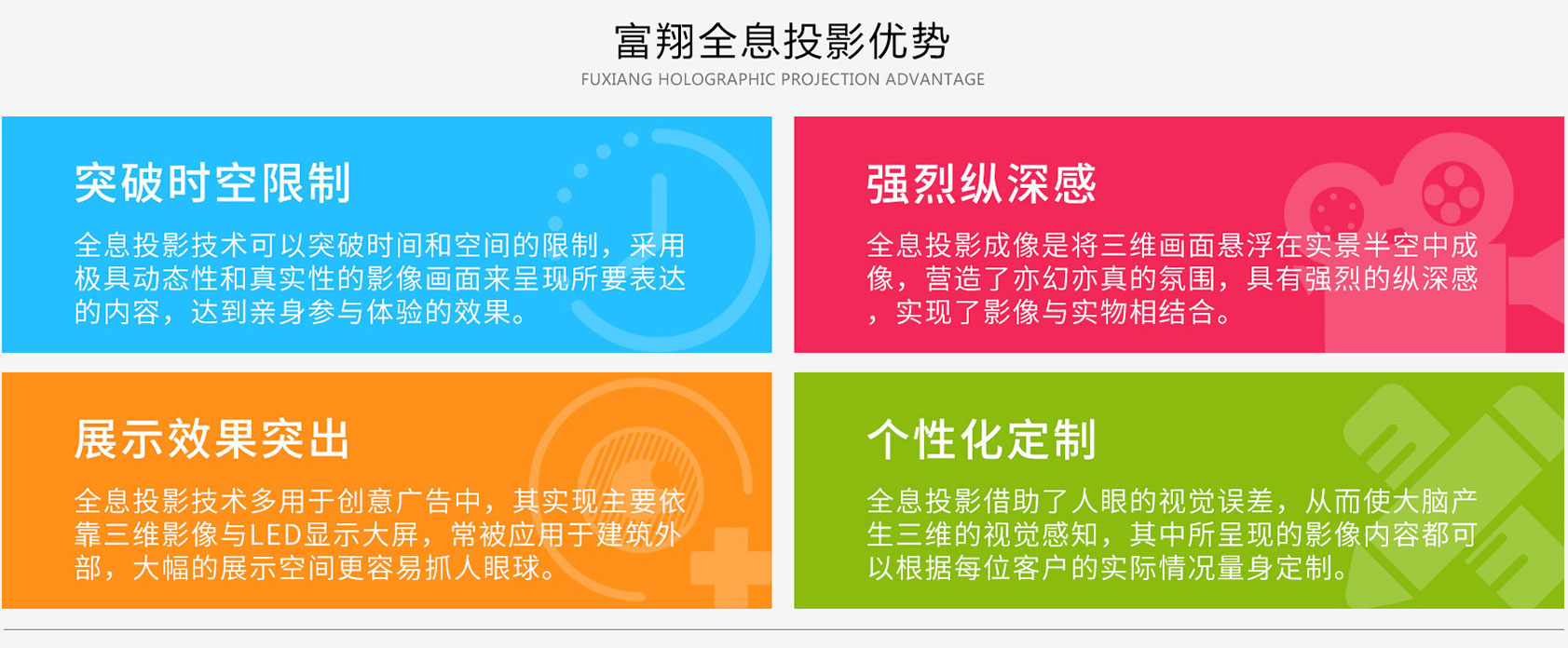 将全新的多种影像信息溶于真实的场景之中,,,,系统是以宽银幕的环境、、、场景模型和灯光的传唤,,,,给人以视觉上的冲击,,,将光学成像装置叠加进真实的场景之中,,,构成动静结合的影视画面,,跨越时空,,,,创意无限。。